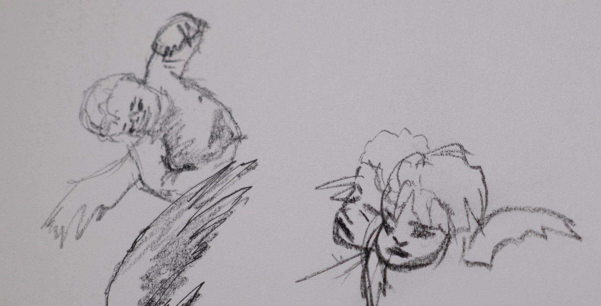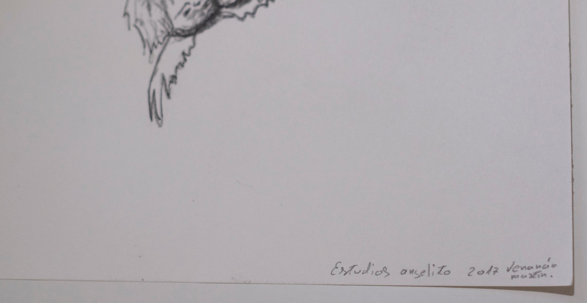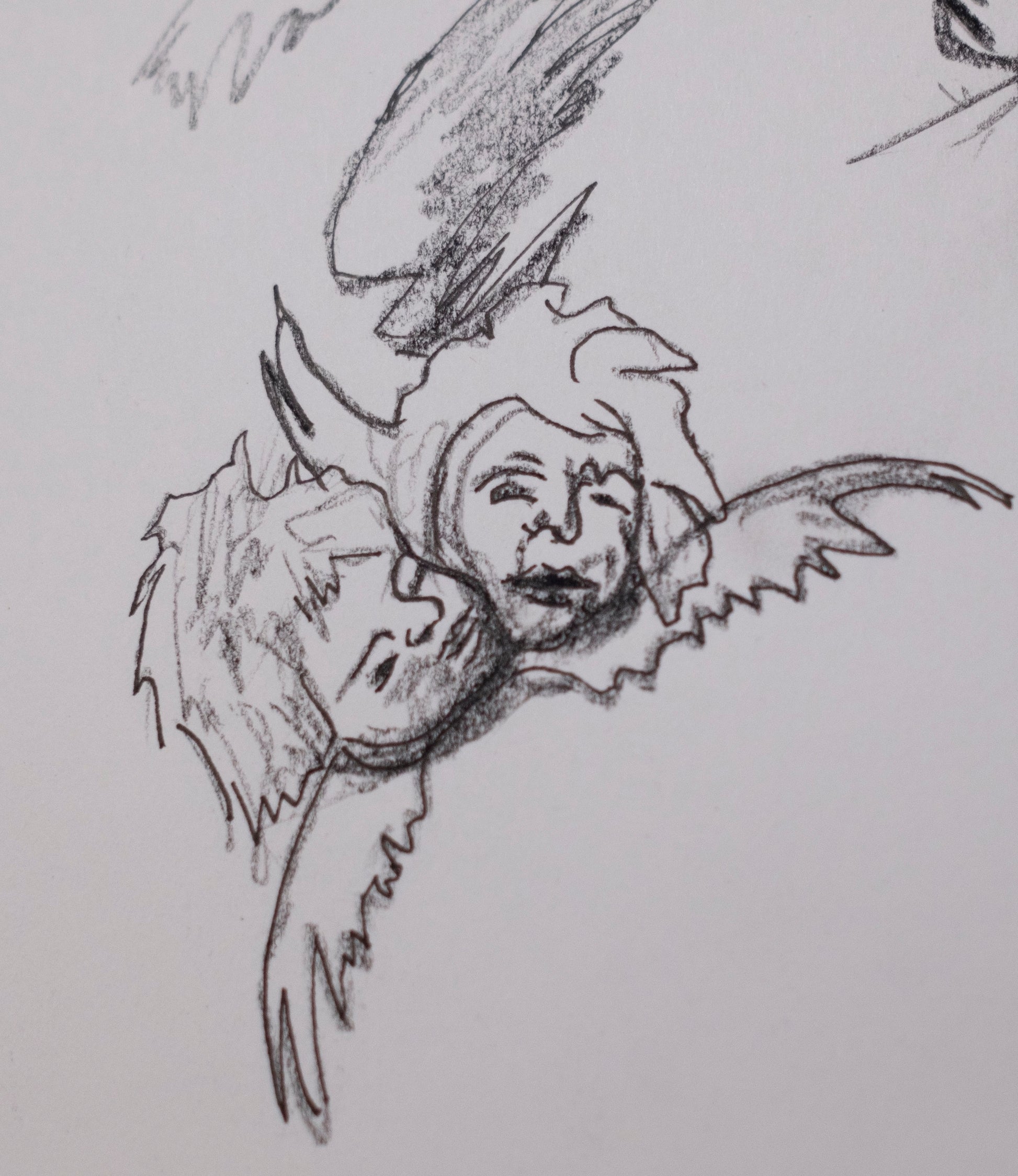 Hay algo casi infantil en su tratamiento, no por falta de control, sino por la decisión de no revestir la imagen de solemnidad. Estos bocetos nacen del deseo de probar, de equivocarse incluso, pero también de observar con atención cómo una línea puede sugerir alas, peso o ligereza.