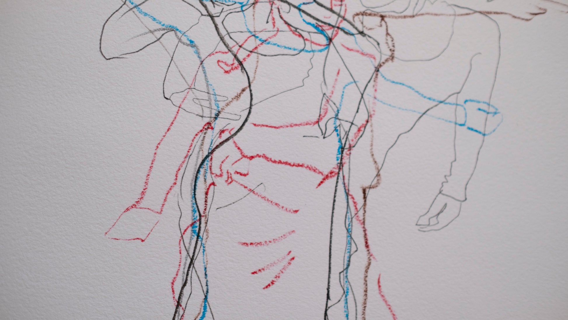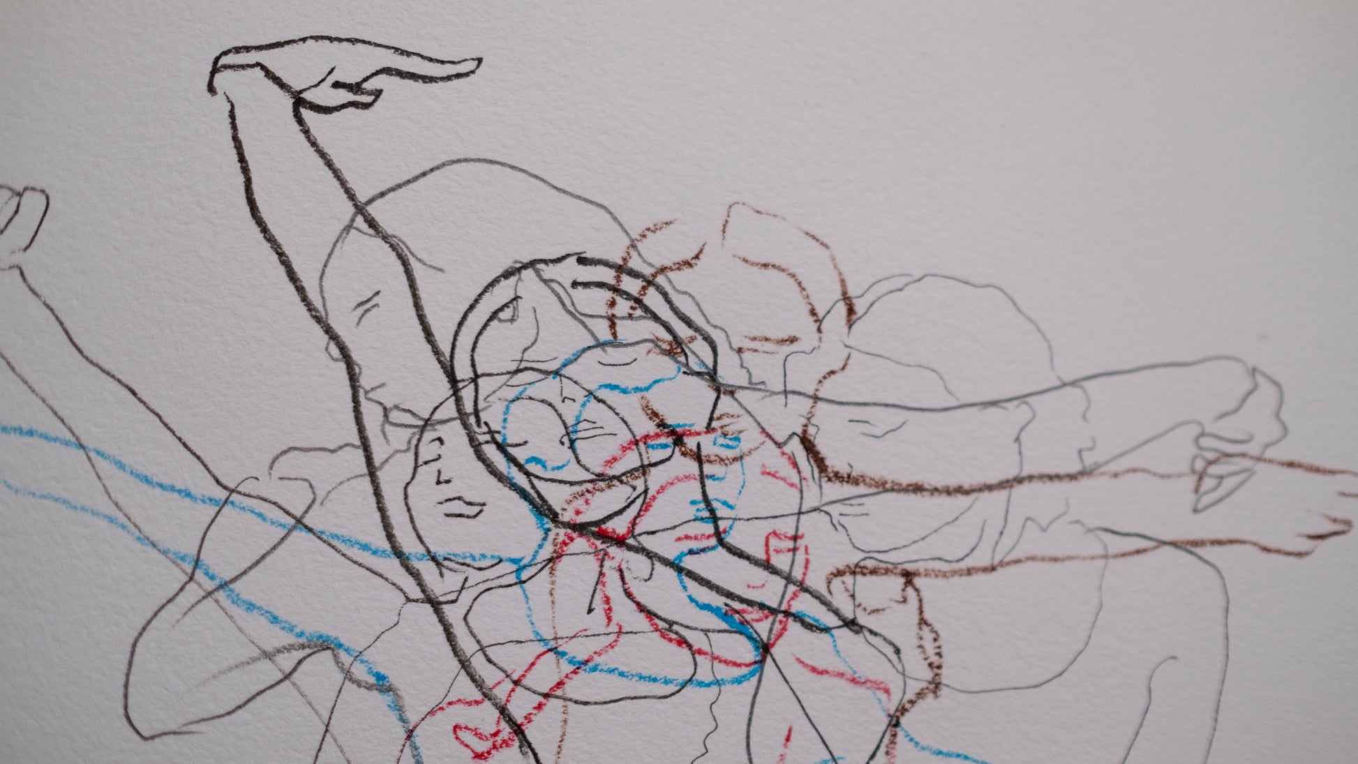 Cada superposición de trazos registra un giro, un impulso, un latido suspendido, como si el baile se quedara grabado en el aire.