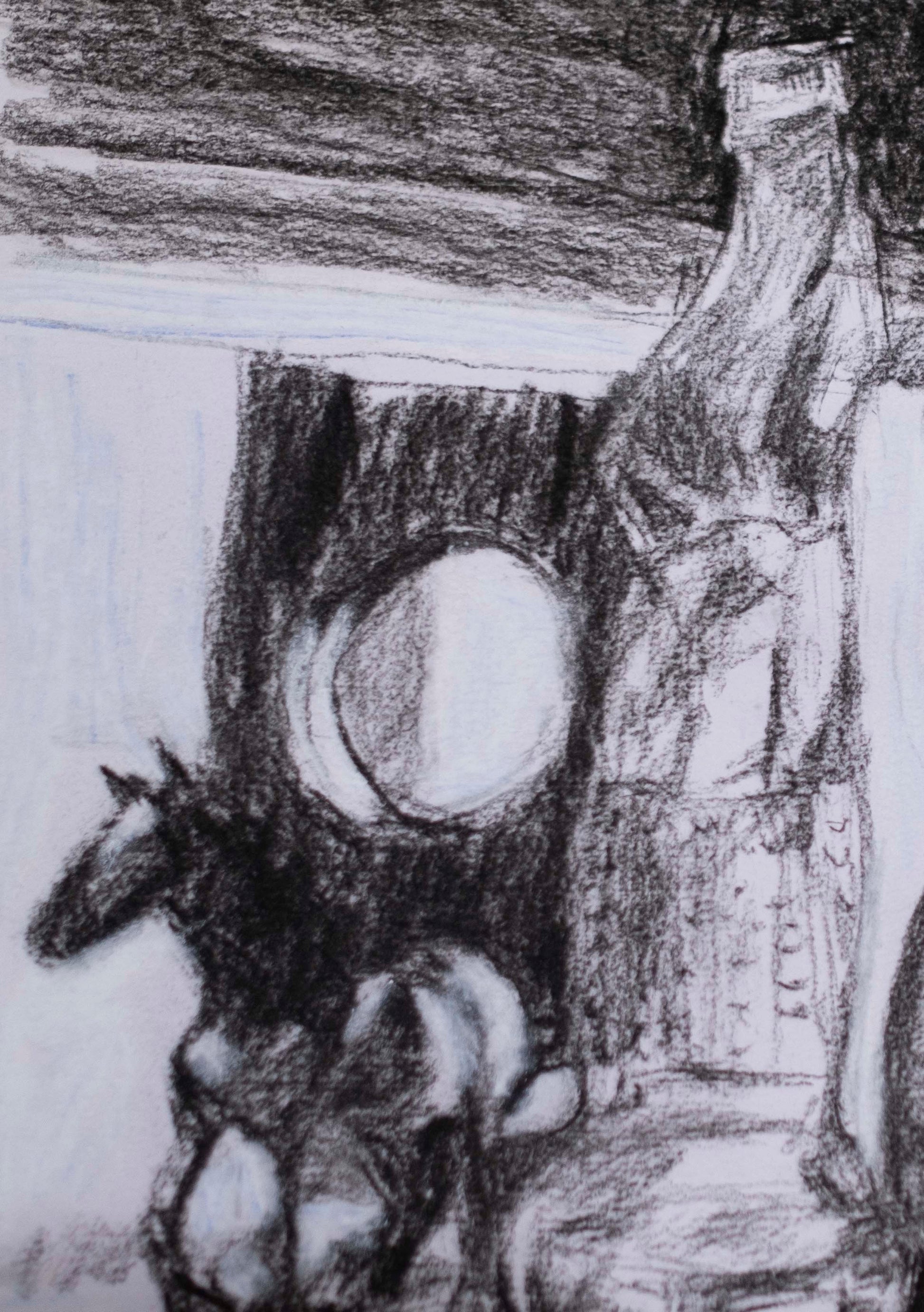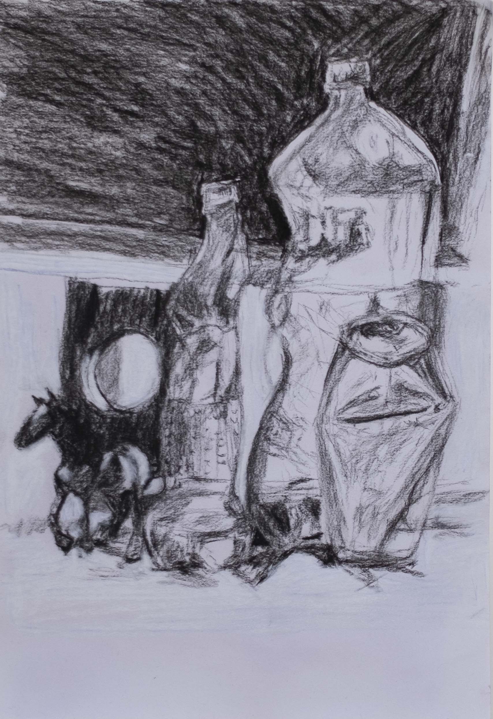 A través del carboncillo y el pastel, traté de darle peso a estos restos mínimos, recordándonos que cada objeto, incluso en su abandono, sigue teniendo una historia que contar.