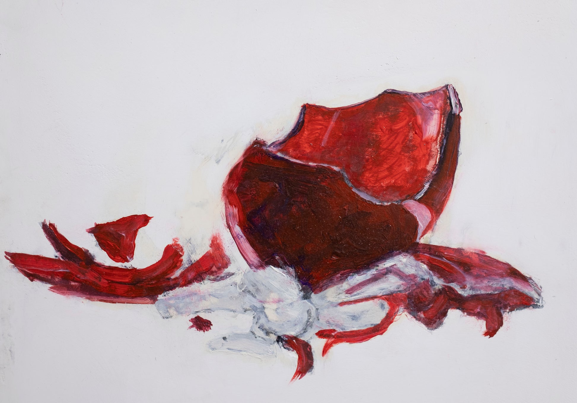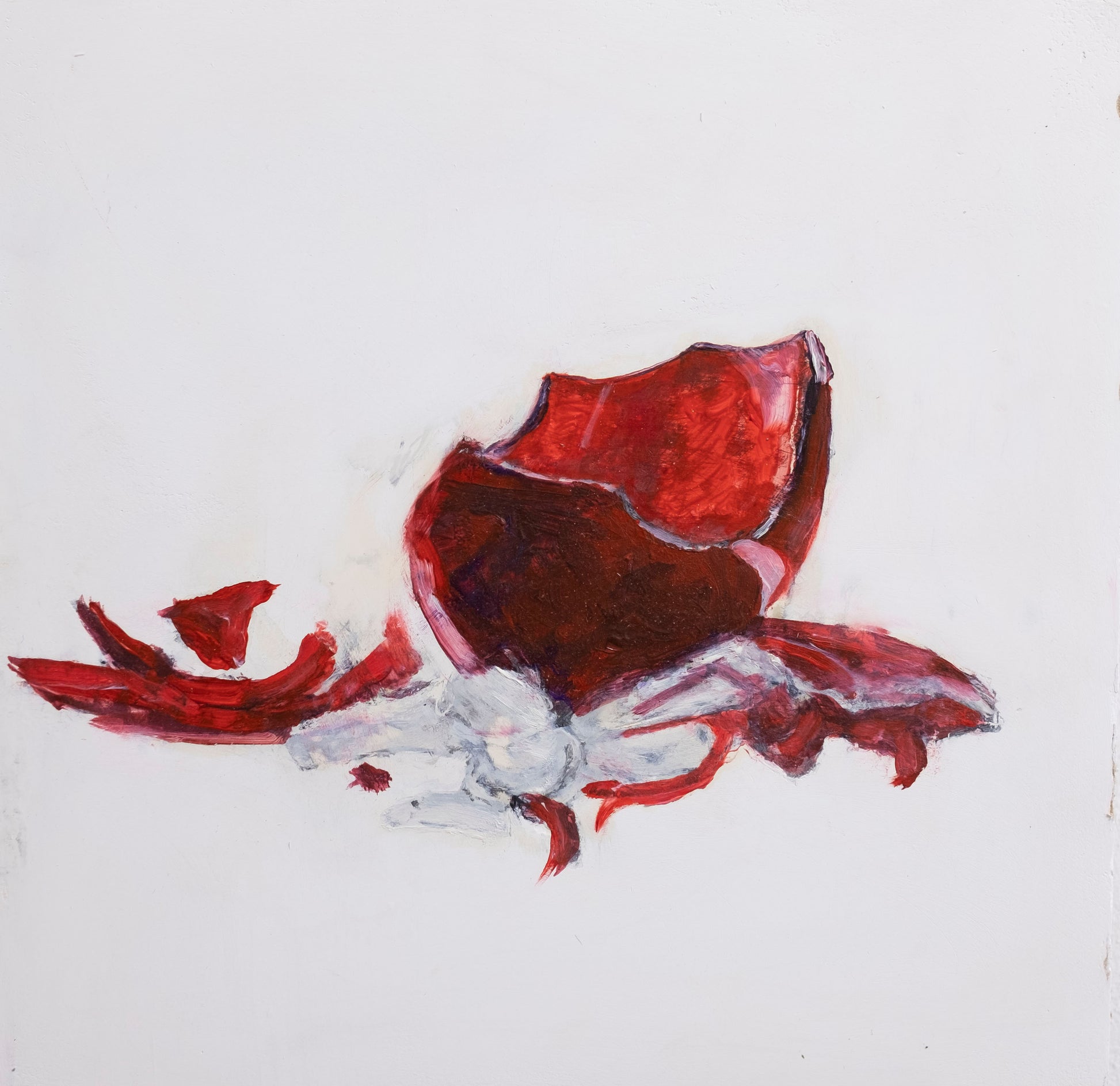 En esta obra, el fragmento de cristal se presenta como testigo silencioso de una historia detenida en el tiempo. La pintura, con óleo sobre acrílico, logra plasmar la delicadeza translúcida del vidrio roto y las sutiles marcas que revelan su pasado. El soporte de cartón nido de abeja contrasta poderosamente con la fragilidad del cristal, potenciando así la reflexión sobre cómo lo efímero y lo sólido pueden coexistir y enriquecerse mutuamente. Esta pieza es un claro recordatorio de que incluso los objetos más cotidianos, una vez rotos, poseen una narrativa propia capaz de conmover desde la ruina.
