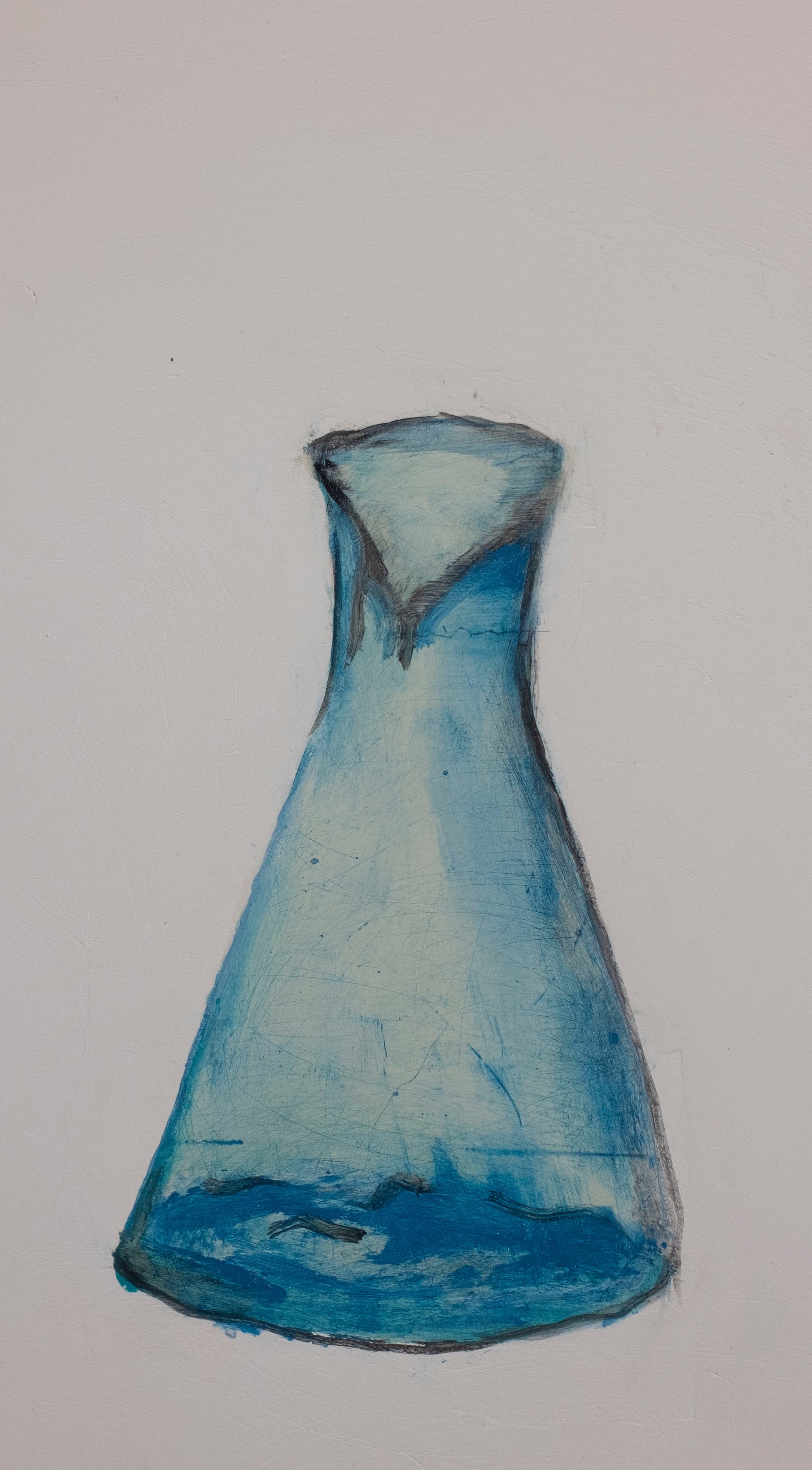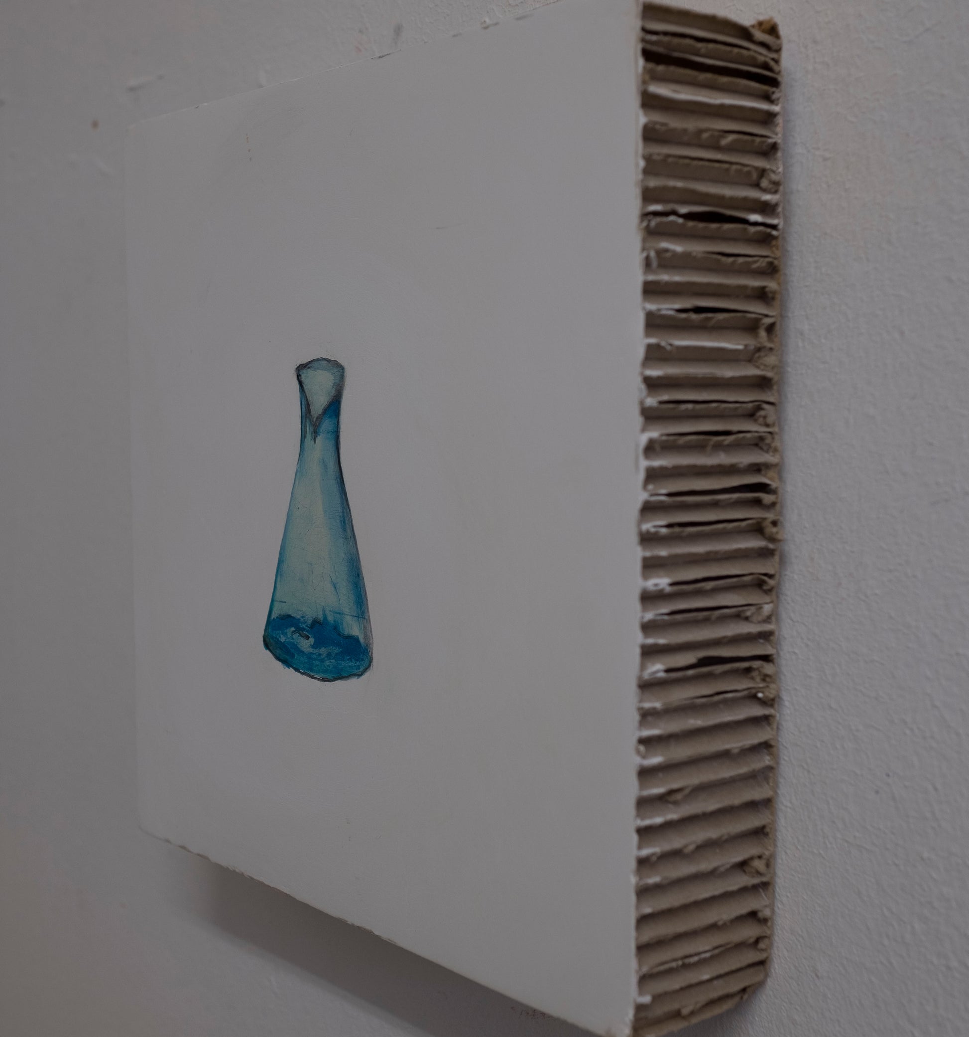 En esta pintura, el cristal fragmentado adquiere un protagonismo particular, revelando una transparencia llena de matices y cicatrices sutiles. A través del óleo sobre acrílico, la obra evoca la paradoja entre resistencia y vulnerabilidad, haciendo visible cómo el paso del tiempo deja marcas indelebles. El cartón nido de abeja, soporte firme y estructurado, enfatiza aún más la naturaleza efímera del vidrio roto, recordándonos que incluso desde la quietud aparente de la ruina, los objetos siguen susurrando sus historias.
