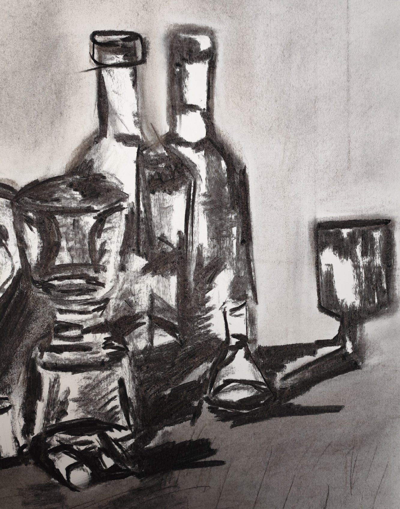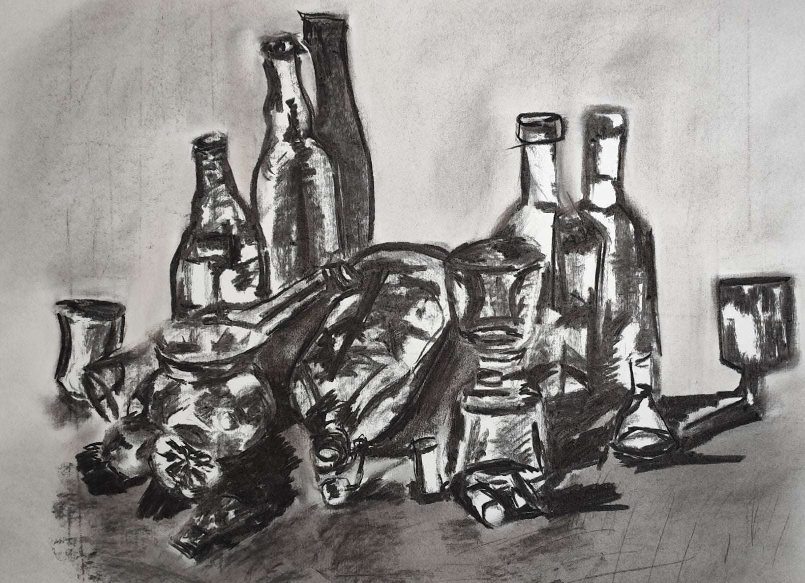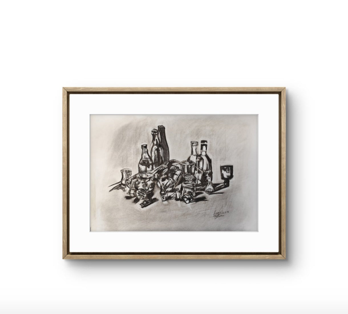 Dibujo construido desde la estructura, el peso y la organización espacial de las formas. Los objetos se presentan como presencias físicas, no como elementos descriptivos. El equilibrio es inestable y el vacío actúa como fuerza activa dentro de la composición.