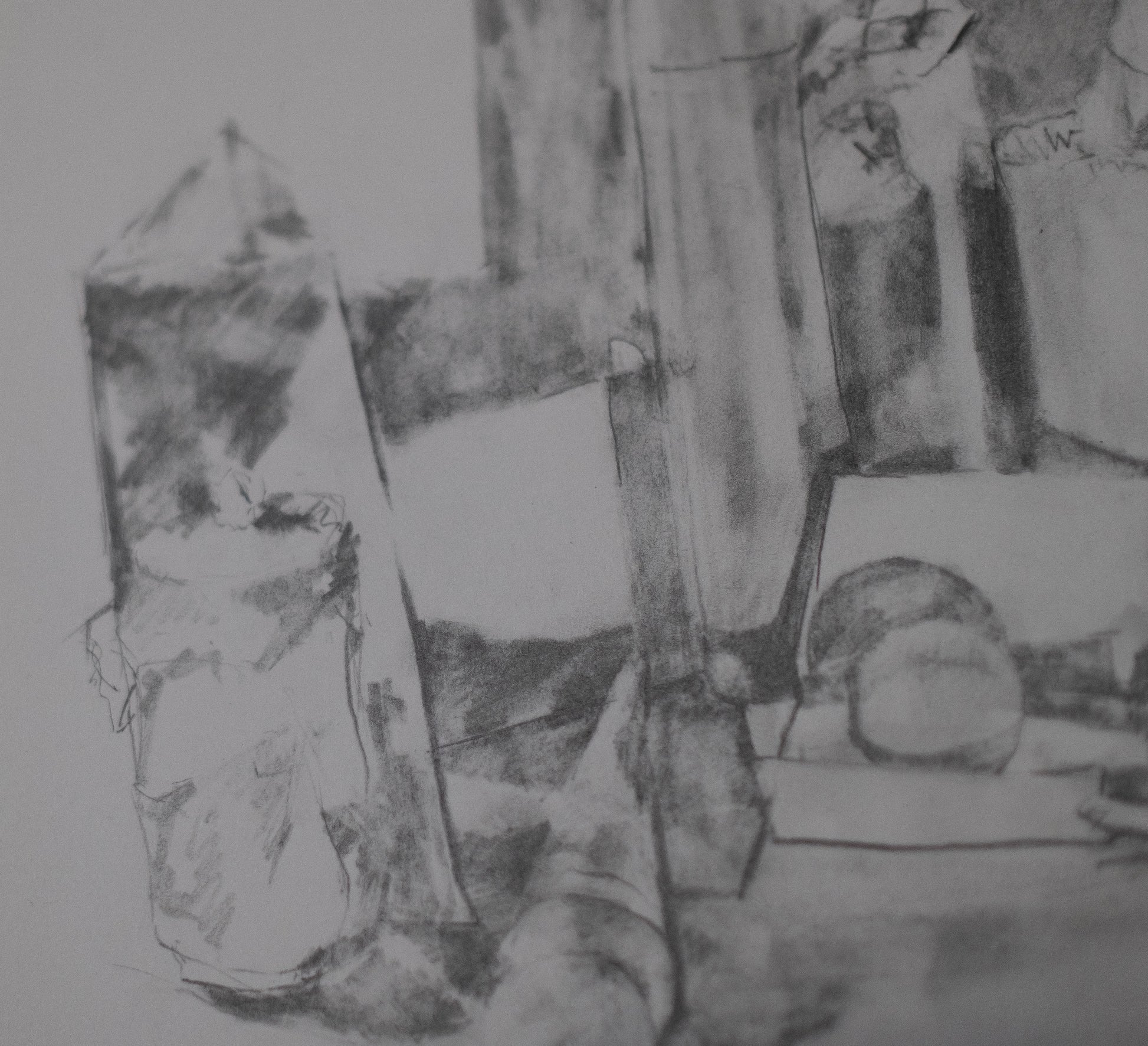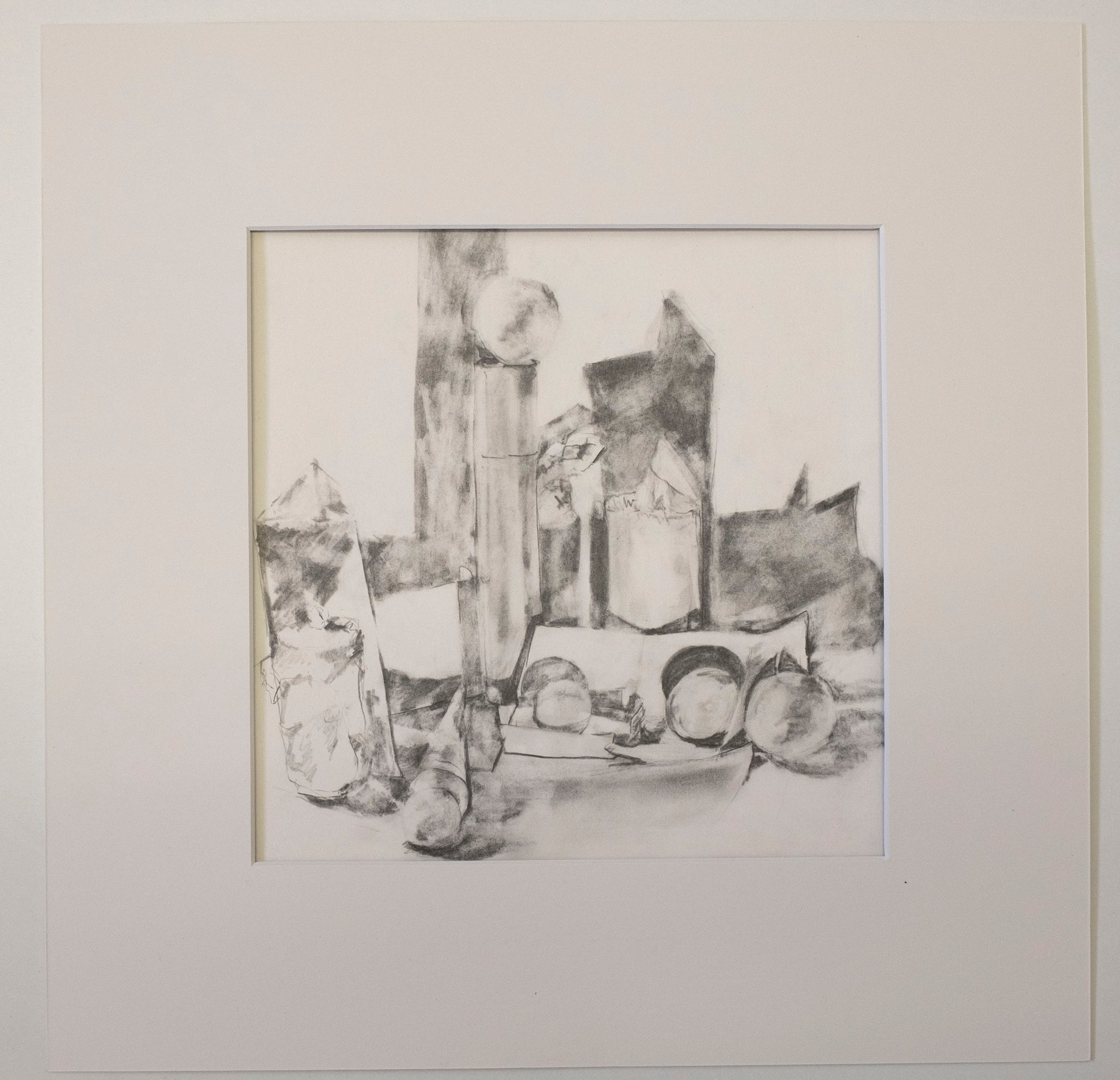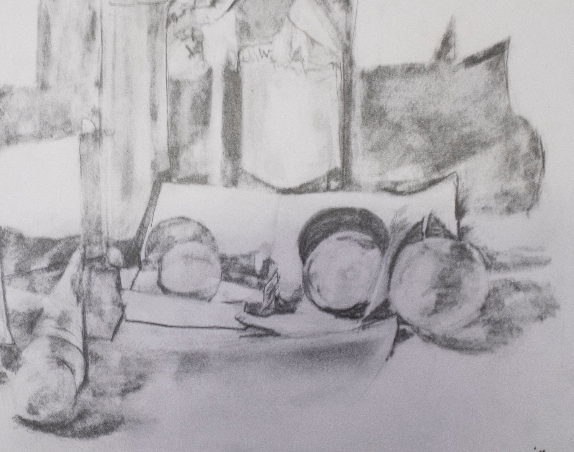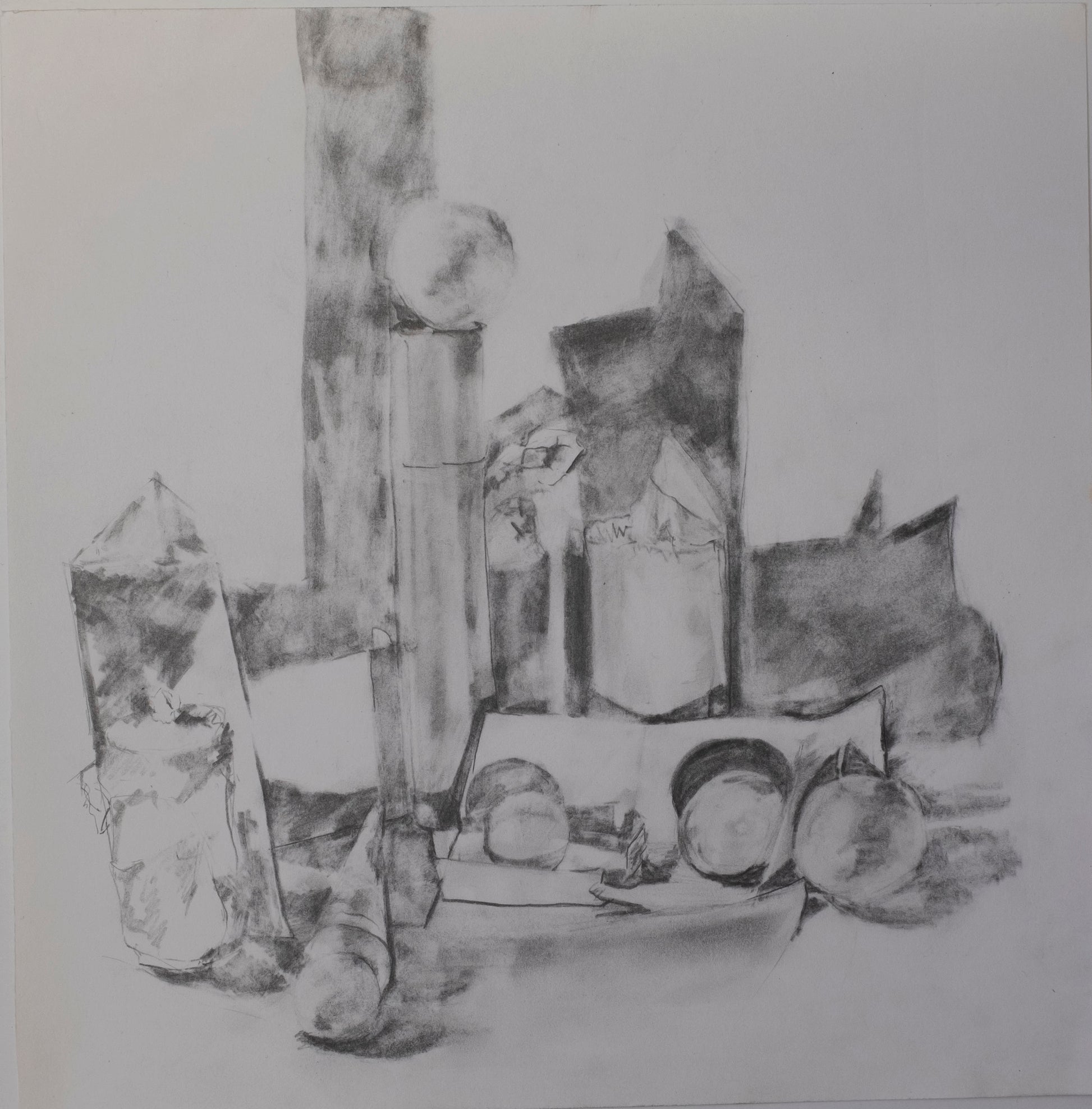 El carboncillo, con su capacidad de sugerir texturas y profundidades, dibuja no solo las formas, sino también los vacíos que las separan y las sostienen.